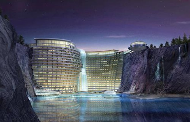 Khách sạn ngầm 19 tầng Shimao Intercontinental nằm trong công viên giải trí Wonderland ở Thượng Hải (Trung Quốc) bao gồm những thiết kế độc đáo như thác nước khổng lồ chảy từ đỉnh tòa nhà xuống, nhà hàng dưới nước, trung tâm thể thao treo lơ lửng trên vách đá,… hứa hẹn sẽ trở thành khu nghỉ dưỡng sang trọng bậc nhất Thượng Hải khi hoàn thành. 4. Shanghai Tower, Thượng Hải, Trung Quốc