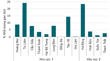 Dẫn đầu thị trường về số lượng giao dịch trong quý này là quận Từ Liêm với 24% và quận Hà Đông với 23%.